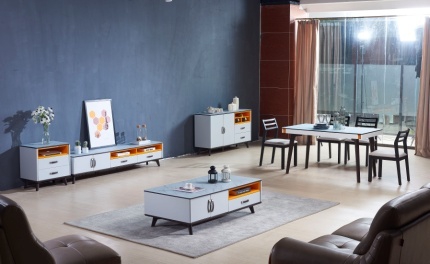 | 材质:幸福湾工艺玻璃+板木结合+实木内抽+缓冲导轨 颜色:白色烤漆+橙色喷漆 风格/搭配:皮沙发彩色系列 |